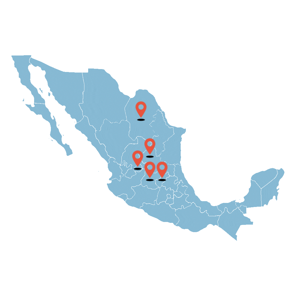 Nuestra área de cobertura que va desde Querétaro, Guanajuato, Aguascalientes y San Luis Potosí nos permiten cubrir toda la zona industrial de este triángulo dorado, el cual abarca el centro de la república, donde el desarrollo industrial en los últimos años ha sido de los más grandes de México.